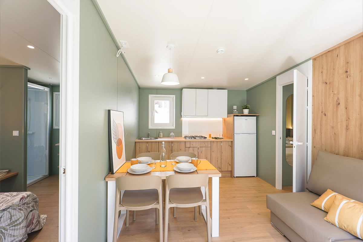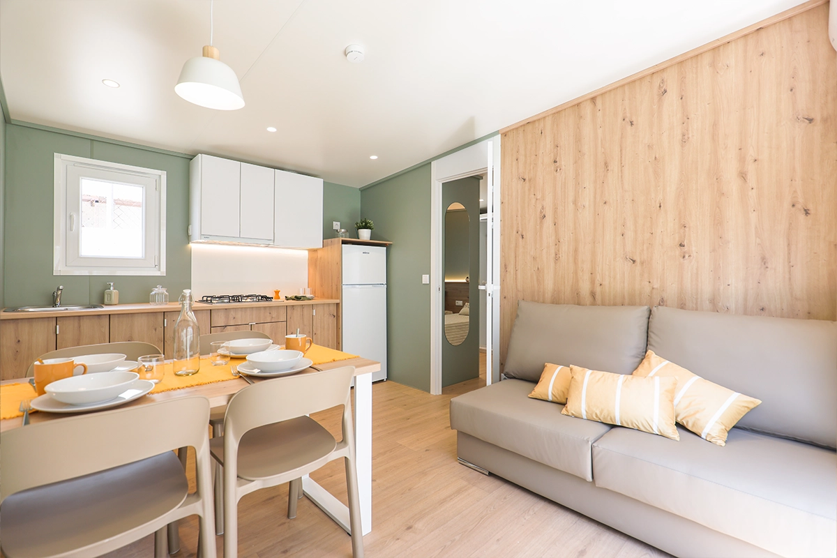 La mobil home Bora Bora pone a tu disposición todo lo necesario para disfrutar de una estancia cómoda. Incluye un equipamiento completo con la opción de añadir diferentes complementos para una estancia más agradable en el día a día. La mobil home Bora Bora Double 863 viene con el siguiente equipamiento de serie: