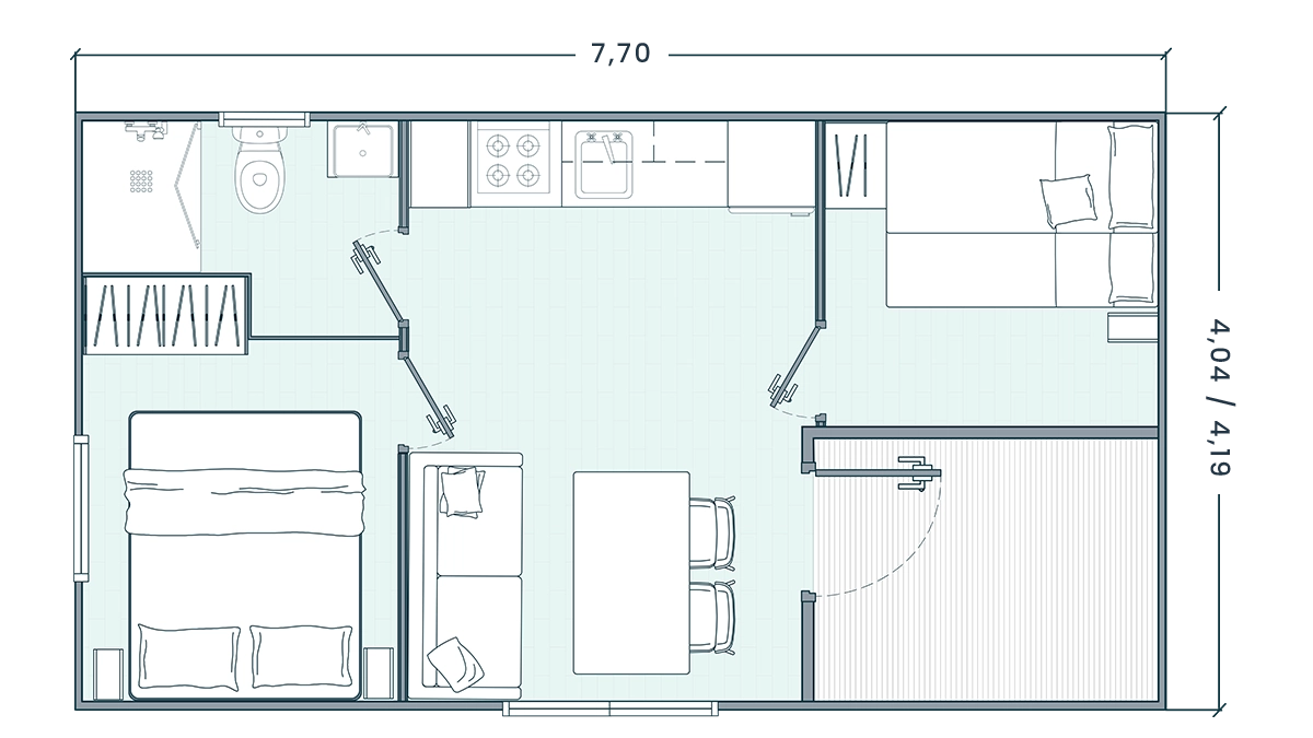 Nuestra línea de mobil homes Bora Bora evocan una sensación de paríso y belleza natural creando ambientes mágicos y ofreciendo la máxima comodidad en cada rincón.