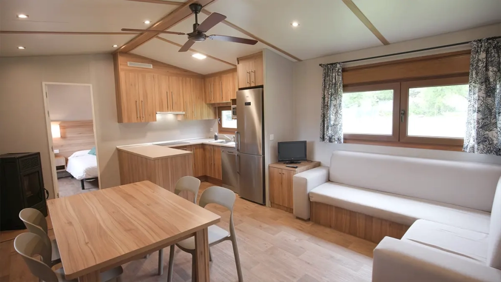 Una de las características más valoradas por Camping Angosto es el excelente aislamiento térmico de los bungalows fabricados por Nidify, fundamentales para garantizar el confort tanto en los fríos inviernos del interior como en los veranos más cálidos. Equipados con climatización eficiente, permiten disfrutar de una estancia confortable en cualquier época del año.