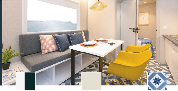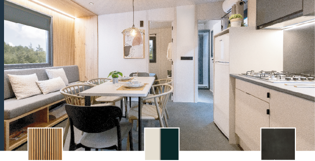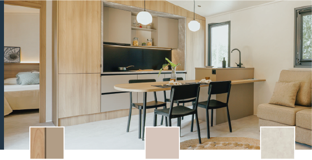 El interior de nuestras mobil-homes está pensado al detalle. Diseñamos mobil homes para campings con todo el equipamiento, confort y garantías, desarrollando un producto de alta calidad y duradero. Hablamos de alojamientos únicos que buscan el bienestar de los huéspedes con diseños exclusivos, pensados para campings que buscan diferenciarse.